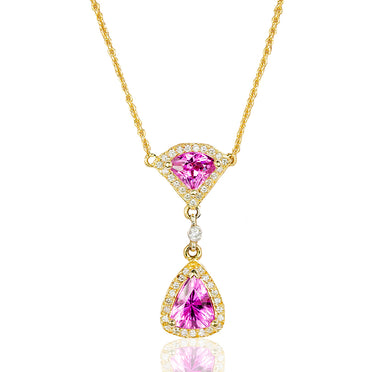 14k Necklace with two pink sapphires weighing 2.81 carats and 0.26 carats of diamonds