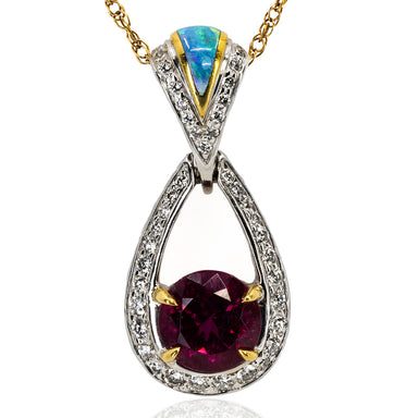 Crafted from 14k white gold, this exquisite pendant showcases a stunning 2.00 carat Rubellite Tourmaline and an additional 0.51 carats of sparkling...