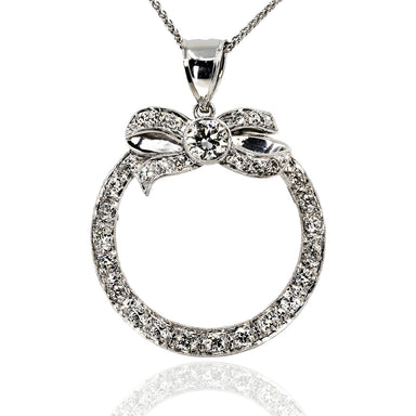 Vintage platinum Circle Bow pendantweith one old european cut diamond weighing approximately 0.75 carats and 30 smaller old european cut diamonds w...