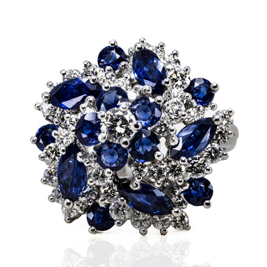 Platinum Ring with 10 round & 5 marquis cut vivid blue sapphires weighing approximately 2.00 carats and 51 round brilliant diamonds weighing ap...