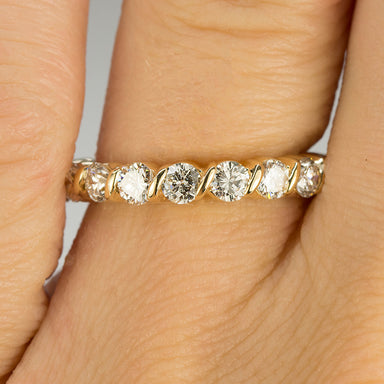 14k Eternity band with 2.50 carats of round brilliant diamonds. 3.95 grams size 6.25