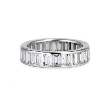 Platinum eternity band with 34 baguette cut diamonds weighing approximatley 3.00 carats, 7.48g, SIze 7