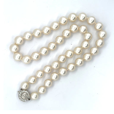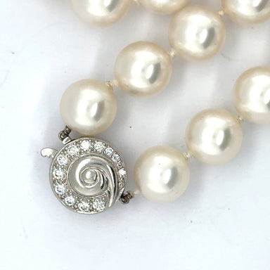 Tiffany & Co Pearl Necklace with 41 9.1mm to 9.8mm AAA quality Akoya pearls with platinum diamond clasp. 18" Signed Tiffany & Co