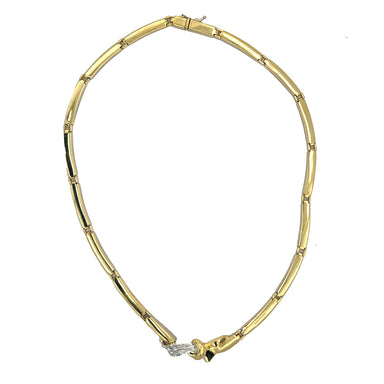 18k Necklace with 9 round brilliant diamonds weighing approximately 0.10 carats. 29.53g