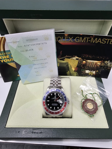 Rolex GMT-Master II "Pepsi" Model 16710", on Jubilee bracelet, Oricinal Box, Books, Certificates and Tags,
