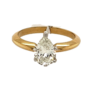 14k Ring with one GIA certified 1.09 I color VS1 clarity pear shape diamond. 3.06 grams size 6