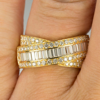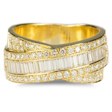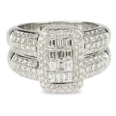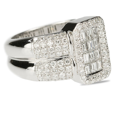 Oliva 18kt white gold double band diamond ring with 1,90 carats of round and baguette diamonds 10.12 grams size 6.75