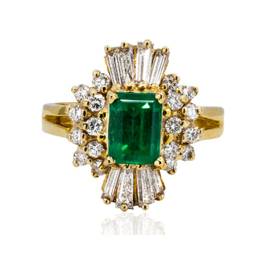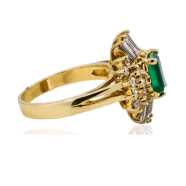 14k Ring with 1.32 carat Colombian emerald and 1.11 carats of round and baguette cut diamonds 7.24 grams