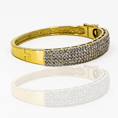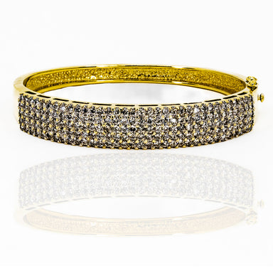 14k Bangle with 170 pave set round brilliant diamonds weighing approximately 5.25 carats. 36.62 grams