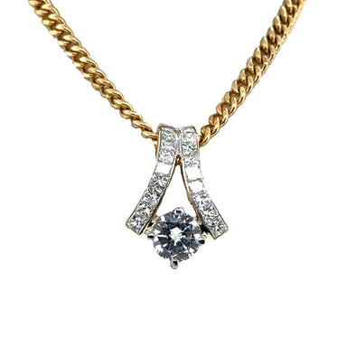 18k & Platinum Pendant with one 0.88 carat round brilliant and 18 princess cut diamonds weighing approximately 1.00 carats. 3.30g