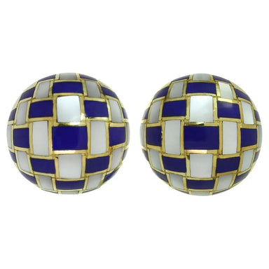 Tiffany & Co. 18k Angela Cummings Lapis Lazuli & Mother-of-Pearl Earrings. 25mm, 24.83g