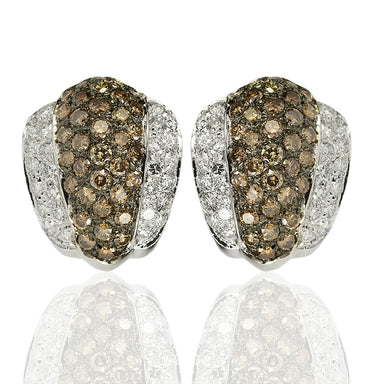 Platinum Earrings with 4.20 carats of champagne round diamonds and 1.68 carats of white round diamonds. French hallmarks. 13.21 grams