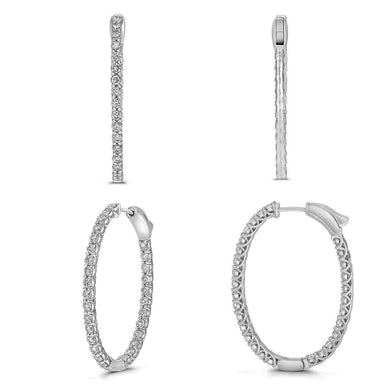 14k White gold oval hoop earrings with 58 round diamonds weighing 3.00 carats. 8.84 grams