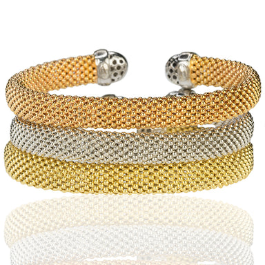 18k Rose Gold Flexible Mesh Bangle with 14 round diamonds weighing approximately 0.20 carats. 27.51 grams. Available in White and Yellow gold.