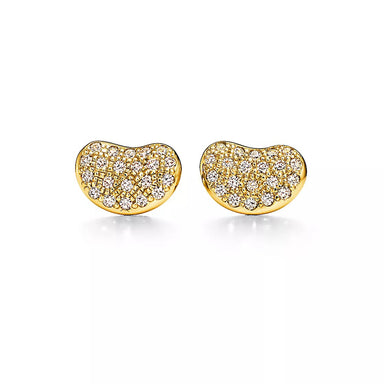 18k Yellow Gold Tiffany & Co "Elsa Peretti" Bean Design Earrings, 9mm, 0.25 carats of diamonds. Current Retail: $6,400