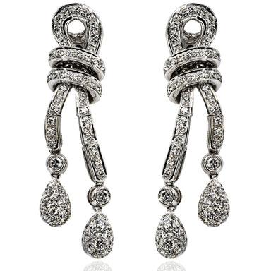 18k White gold earrings with 126 pave set diamonds weighing approximately 2.50 carats. 19.59 grams