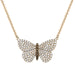 14k Butterfly Necklace with 126 white round brilliant diamonds weighing 0.50 carats and 10 champagne round brilliant diamonds weighing 0.05 carats. On adjustable 16-18" chain. 2.98g