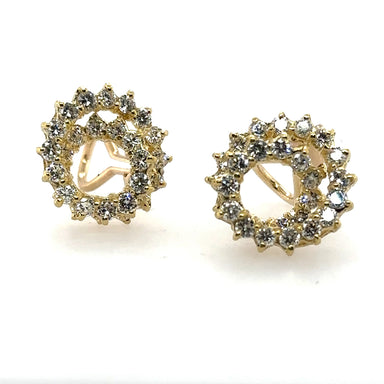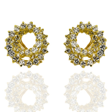 18k Swirl earrings with 60 round diamonds weighing approximately 2.40 carats. 7.40 grams