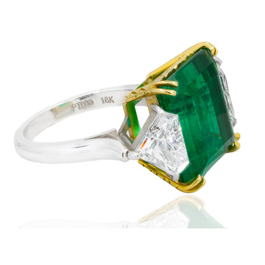 SKU: 6167$125,000.00| /Platinum & 18k Ring with AGL certified 9.91 carat emerald and 2 sheild cut diamonds weighing 1.31 carats. 10.86 grams