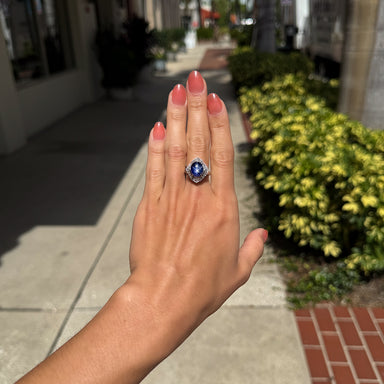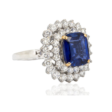 SKU: 8097$14,500.00| /14k White gold ring with 4.03 carat royal blue sapphire and 1.56 carats of colorless round brilliant diamonds. 9.89 grams
