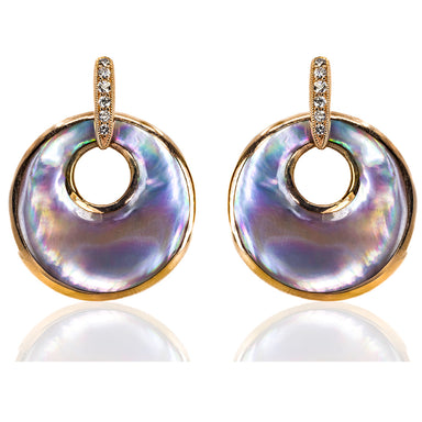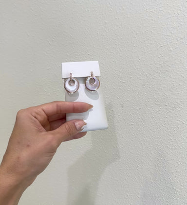 Kabana 14k rose gold earrings with 0.16 caratss of diamonds and pink mother of pearl. 10.12 grams