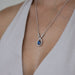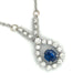 14k White gold necklace with approximate 2.00 carat royal blue sapphire and 19 rouhnd brilliant diamonds weighing approximately 1.45 carats. 10.38g