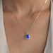 14k Pendant with one 2.98 carat square cushion cut Tanzanite and 29 round diamonds weighing 0.15 carats. Pendant is suspended on a 16-18" adjustable platinum chain. 4.46g
