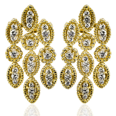 18k Hammerman Brothers earrings with 92 round brilliant diamonds weighing approximately 3.70 carats. 19.14 grams