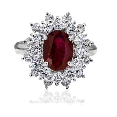 Platinum Ring with AGL certified Burma Ruby weighing 3.03 carats and 24 round brilliant diamonds weighing 2.26. 12.55 grams size 7