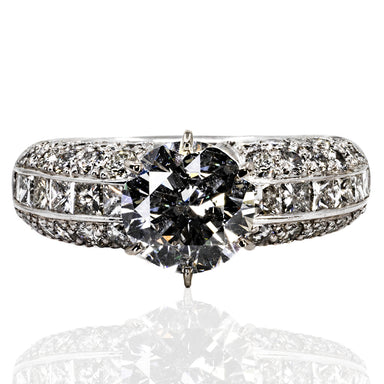 Platinum Ring with one GIA certified ( #6183951846) 2.02 carat G color SI1 clarity round brilliant and 12 Princess cut and 48 round brilliant diamo...