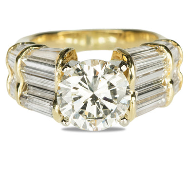 18k Ring with GIA certified (5191980106) M color VVS1, 2.62 carat round brilliant and 36 baguette diamonds weghing approximately 1.60 carats. 9.92 ...