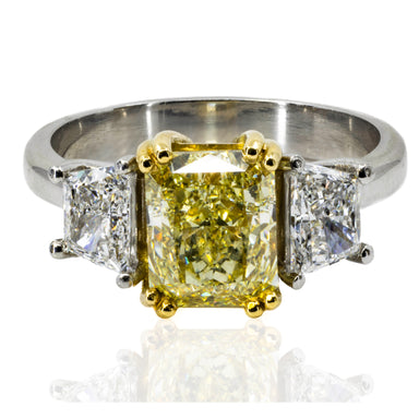 Platiunm & 18k Ring with GIA certified (#1349314386) 2.28 carat radiant cut Fancy Light Yellow, VS2 clarity radiant cut diamond and 2 E-F color...