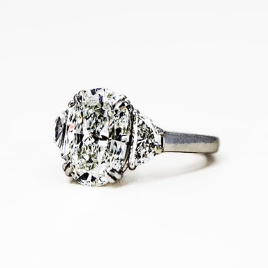 Platinum Ring with 4.02 J color SI1 clarity oval brilliant diamond, GIA certified #1126865966 and 2 matching half moon cut diamonds weighing approx...