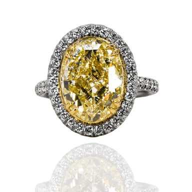 18k Ring with GIA certified (5202990095) 5.80 W-X (light yellow) color VS2 clarity oval diamond and approximately 1.00 carats of round diamonds. 6....