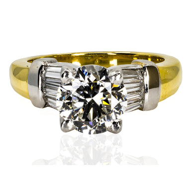 18k & Platinum Ring with GIA certified (#2225071615) H color VS2 clarity 2.22 carat round brilliant and 8 tapered bagutte diamonds weighing 0....