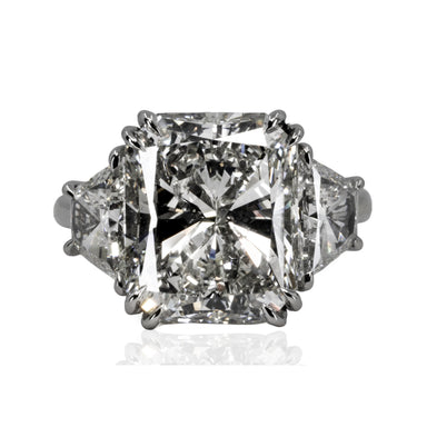 Platinum Ring with one 8.02 carat, AGS certified, J color SI2 clarity radiant cut diamond and two brilliant cut trapazoids weighing 1.62 carats. 10...