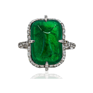 PL Ring with 9.88ct Gueblin Certified Emerald Cabochion Minor and 2.98cts of RB diamonds