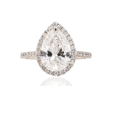 Platinum Ring with GIA ceritified (#2231298393) 3.08 carat, G color, VS1 clarity pear shape diamond and 42 round brilliant diamonds weighing 0.64 c...
